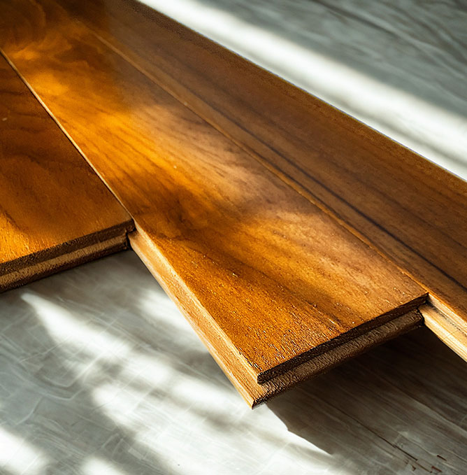 Engineered with our 5-Stage Fortification Process using A-Grade Teak, Mahogany, and Merbau, it perfectly balances durability with the natural comfort of real wood. Our Wood flooring panels feature an advanced interlocking system, ensuring quick installation, a seamless finish, and long-term stability. Beyond its strength and refined aesthetics, it promotes healthier living by offering a naturally warm, joint-friendly surface that reduces strain on knees and feet, while helping maintain a more comfortable indoor environment. Each plank is crafted to enhance both the architectural character of your space and the everyday well-being of those who live in it.